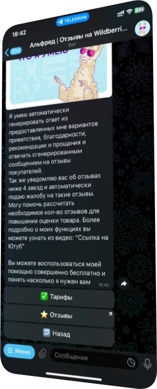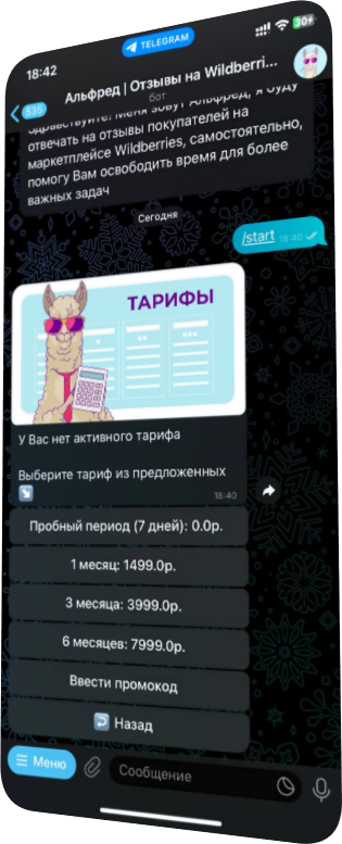 Внедрена тарифная линейка, с которой можно ознакомиться из самого бота.